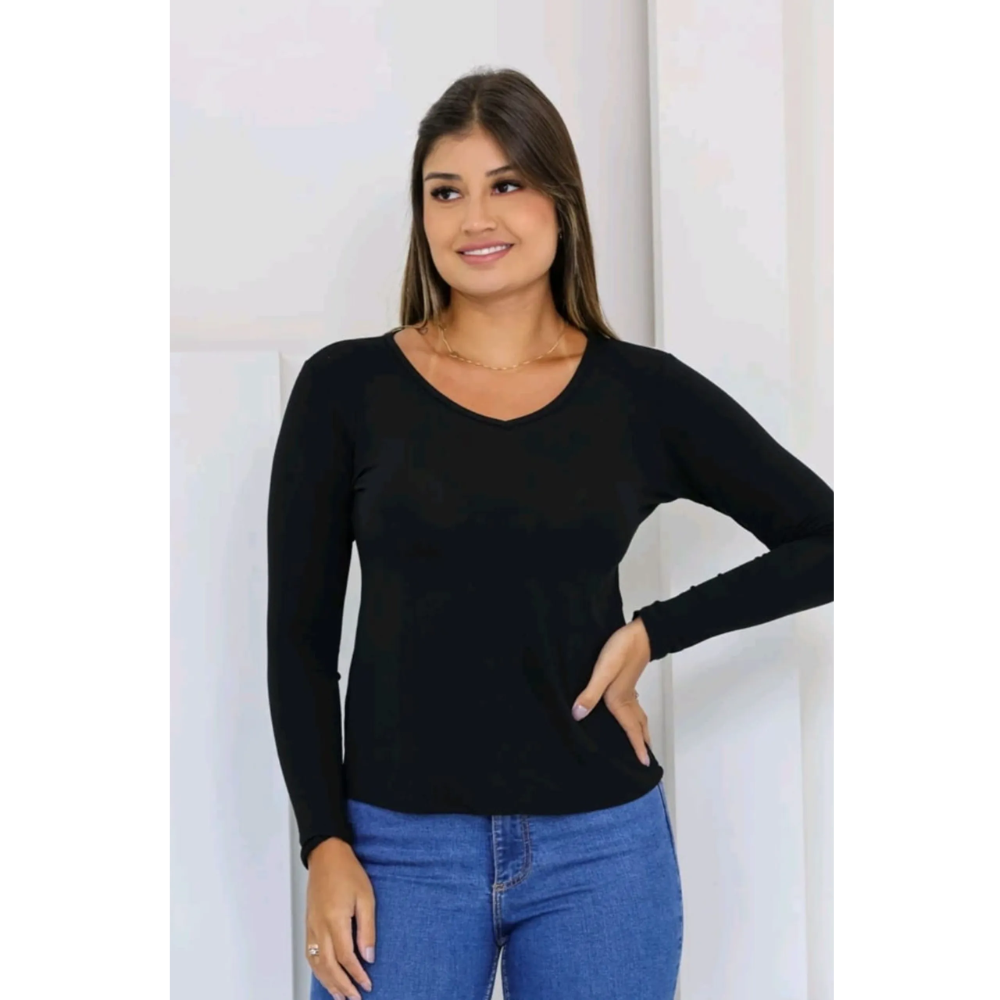 Blusa básica de manga longa, perfeita para o dia a dia. Confeccionada em tecido leve e confortável, possui modelagem clássica que se adapta bem ao corpo sem apertar. Versátil e atemporal, é ideal para compor desde looks casuais até produções mais elegantes com sobreposições. Uma peça essencial no guarda-roupa.