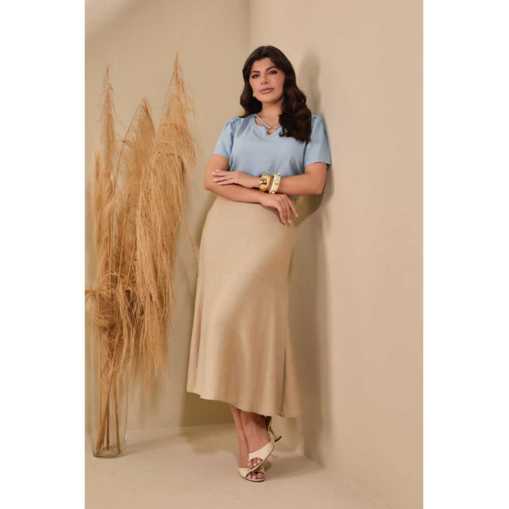 Blusinha meia manga com design básico e casual, perfeita para o dia a dia. Possui detalhe em argola no decote, que adiciona um toque de estilo sem perder a simplicidade da peça. Confeccionada em tecido confortável, garante caimento leve e praticidade, ideal para combinações versáteis e looks descomplicados.