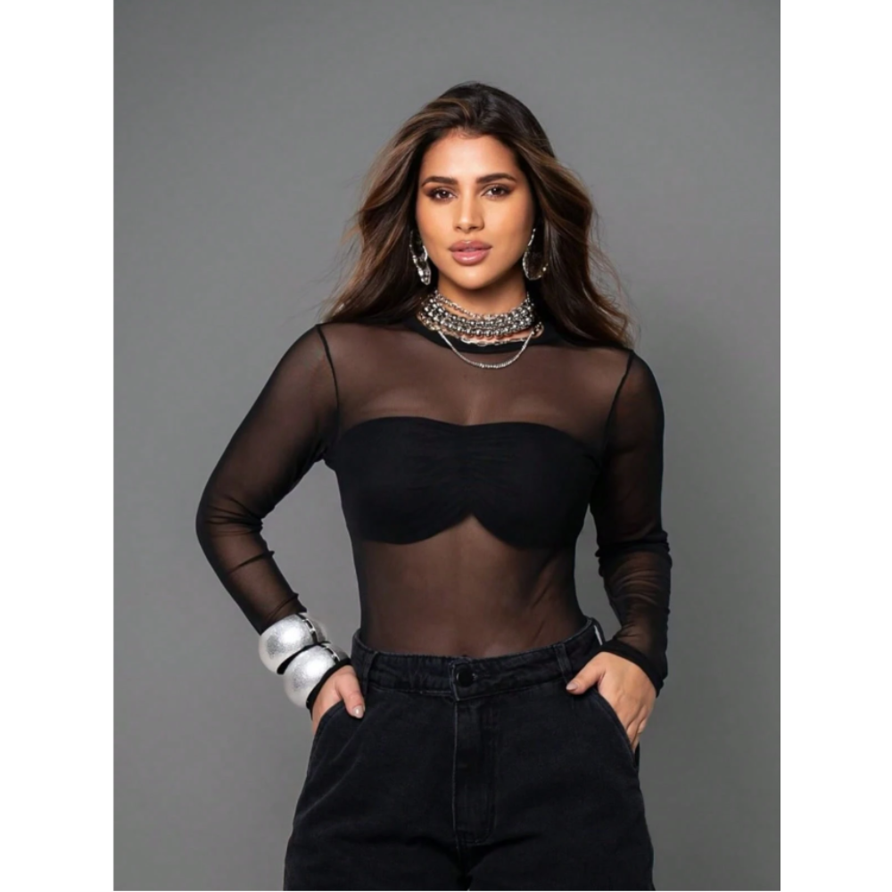 Delicado e sofisticado, este body em tule transparente é perfeito para compor looks modernos e cheios de estilo. O modelo valoriza a silhueta, trazendo um toque sensual sem perder a elegância, e pode ser usado sozinho ou combinado com outras peças, como blazers, saias ou calças de cintura alta. Confeccionado em tule de alta qualidade, garante conforto e caimento impecável.