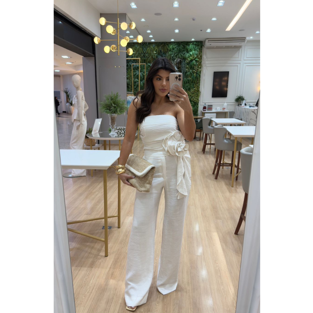 Calça pantalona de caimento fluido alonga a silhueta e garante movimento e conforto. Confeccionado em tecido leve e encorpado, o modelo une estilo e versatilidade, podendo ser usado em eventos especiais ou em produções modernas para o dia a dia.