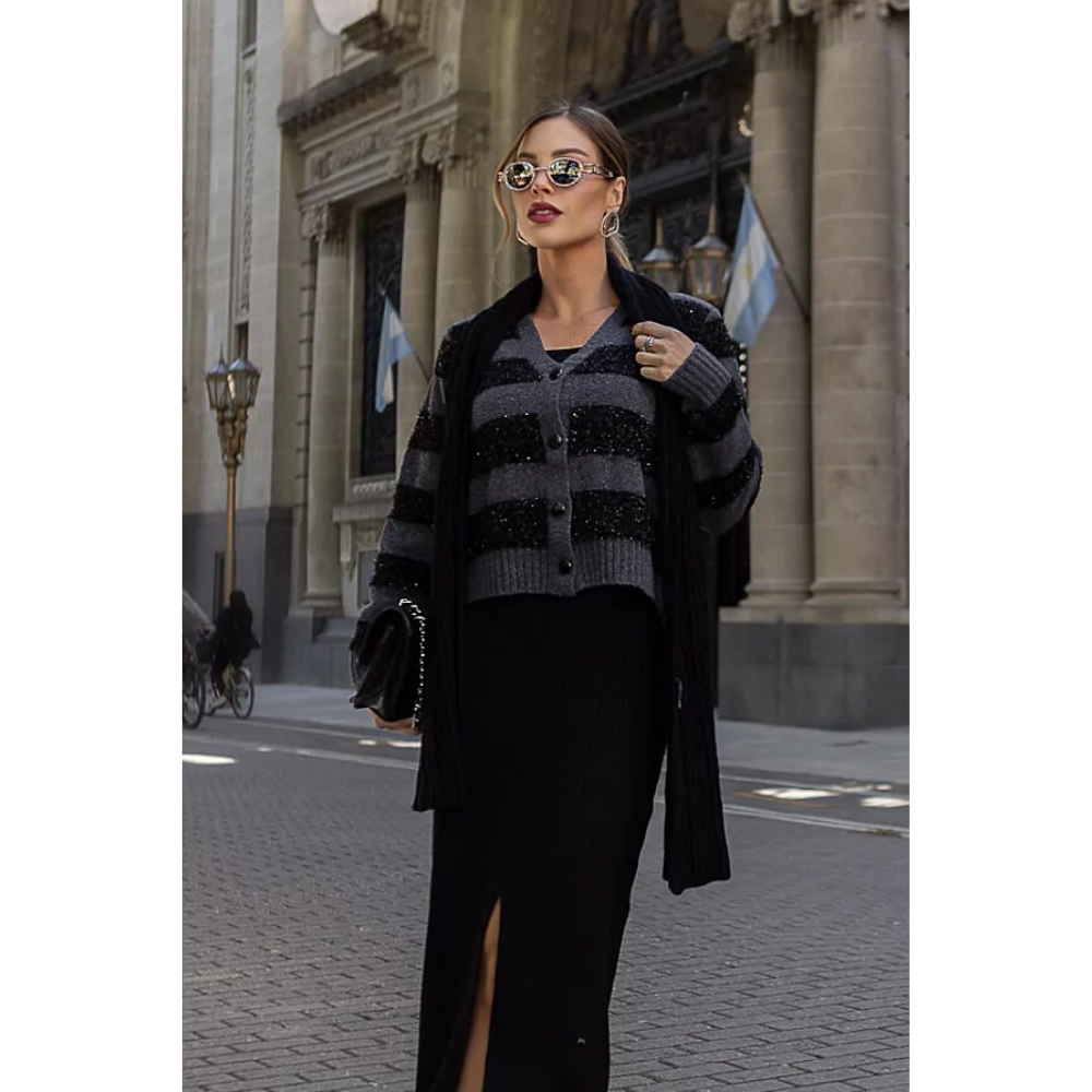 #Disponível na cor: Chumbo com listras Pretas