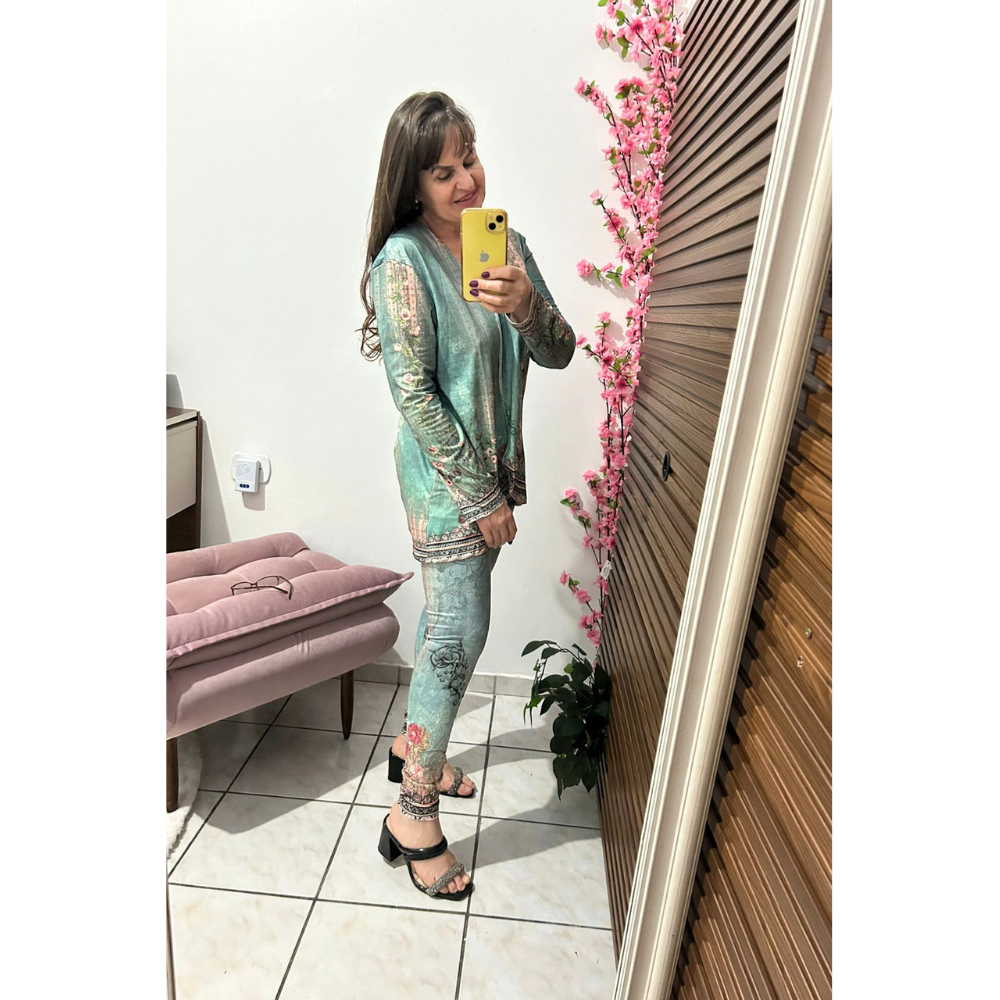 Conjunto de calça e cardigan com estilo autêntico, pensado para mulheres que valorizam conforto sem abrir mão da personalidade. Confeccionado em tecido leve e agradável ao toque, possui modelagem que proporciona liberdade de movimento e um visual marcante. A calça e o cardigan com caimento natural criam uma combinação versátil, moderna e cheia de identidade — perfeita para quem quer se destacar com originalidade e atitude no dia a dia.