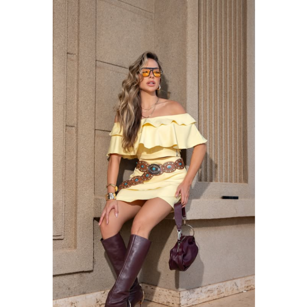 Cropped estilo ciganinha com babado delicado, trazendo charme e leveza ao visual. Possui decote ombro a ombro que valoriza a silhueta, além de tecido macio e confortável que garante caimento perfeito. Uma peça versátil, ideal para looks casuais ou produções mais descontraídas e femininas.